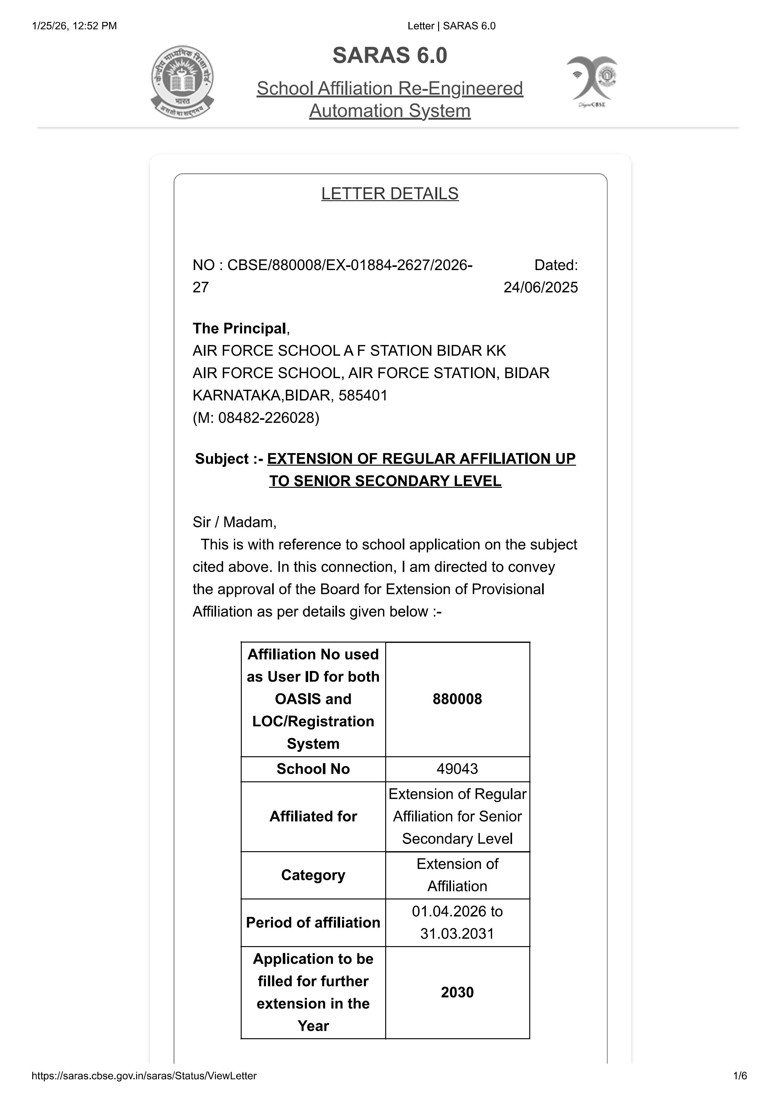 COPIES OF AFFLIATION /UPGRADING LETTER AND RECENT EXTENTION OF AFFILIATION, IF ANY |